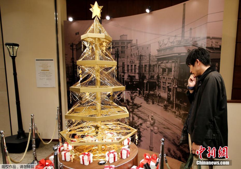 當?shù)貢r間2016年11月21日,日本東京,一棵純金圣誕樹在銀座一家百貨商店售賣,圣誕樹由19公斤黃金裝點,售價180萬美元(約合人民幣1240萬元)。