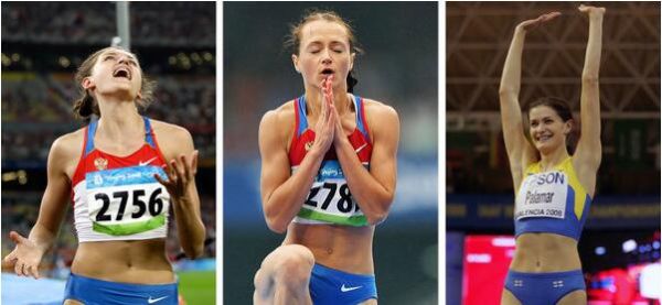 當年成績排在洛之前的三位女運動員——左起:俄羅斯運動員安娜·奇切羅娃、葉連娜·斯列薩連科和烏克蘭運動員維塔·帕拉馬爾——因興奮劑問題被取消獎牌資格。(圖片來源:美國《紐約時報》網站)