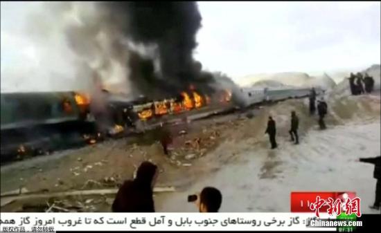 國(guó)營(yíng)電視臺(tái)播出4節(jié)車廂出軌的畫面,其中2節(jié)著火。伊朗紅新月會(huì)發(fā)言人莫塔札維(Mostafa Mortazavi)表示,消防員正試圖控制火勢(shì)。
