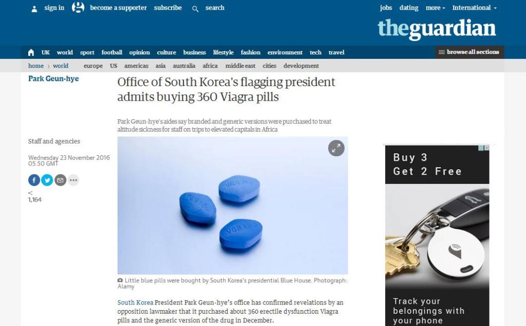 英國《衛(wèi)報》:韓國政府承認購買360粒偉哥