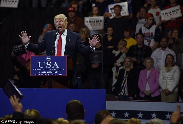 當(dāng)選總統(tǒng)特朗普12月1日首次在俄亥俄州辛辛那提市舉行選后集會(huì)(圖片來(lái)源:英媒)
