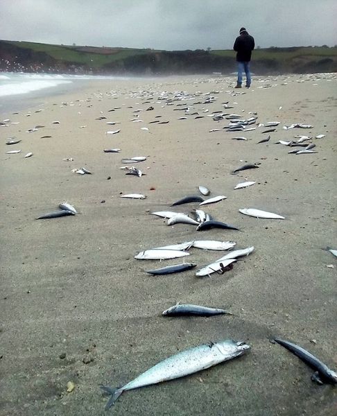【環(huán)球網(wǎng)綜合報道】據(jù)英國《每日郵報》12月5日報道,12月4日,英國男子愛德華·波爾(Edward Bol)在康奈爾郡噴特宛(Pentewan)海灘上遛狗時發(fā)現(xiàn)數(shù)以千計的鯖魚和鯡魚尸體。專家稱這種現(xiàn)象實屬罕見,或因惡劣天氣導致魚群死亡后被沖刷上岸。