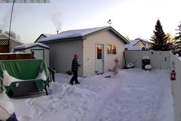 名為mig399的用戶在YouTube上發(fā)布了相關(guān)視頻。畫面顯示,在圣誕節(jié)當(dāng)天,這名男子正準備放飛一架散發(fā)著粉色光芒的無人機,但就在無人機剛飛離地面還不到一米的時候,他家的寵物狗就從屋子里飛奔出來,跳到空中,用嘴把無人機叼住,然后將它拖回了地面。