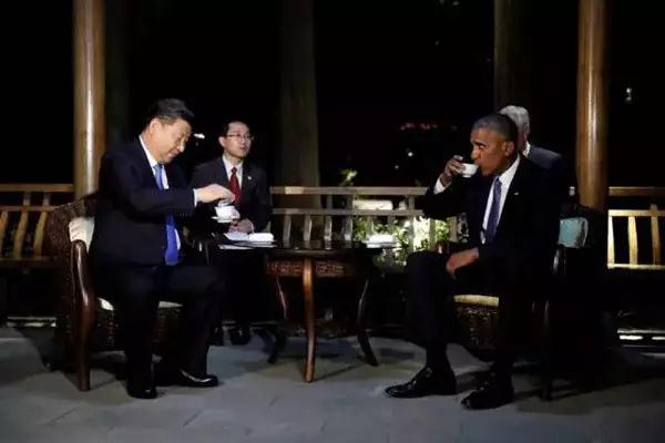 2016年9月3日,在G20杭州峰會召開前夕,習(xí)近平主席和奧巴馬總統(tǒng)在杭州西湖國賓館舉行了一次重要會晤,中美率先批準《巴黎協(xié)定》并共同向聯(lián)合國秘書長交存批準文書。會后,習(xí)近平與奧巴馬在西湖國賓館的涼亭喝茶并在湖邊漫步。