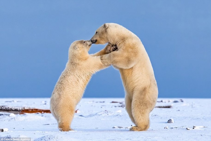 據(jù)英國《每日郵報》1月24日報道,近日,攝影師Shayne McGuire捕捉到了兩只小北極熊超有愛的一幕。這兩只小北極熊在等待母親捕食回來的時候,在雪地里手牽手仿佛跳起了華爾茲一樣,甚至還給了對方一個溫暖的吻。Shayne表示:“一般情況下是不會發(fā)生這樣的事情的!