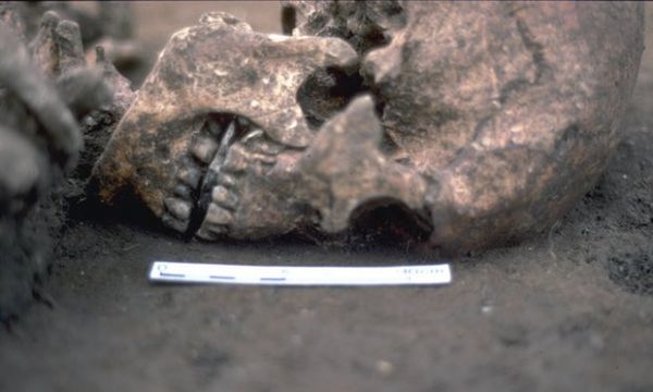 英國考古學(xué)家發(fā)現(xiàn)一具令人驚駭?shù)哪行允牵纳囝^被人割下后再塞進石頭。(英國《衛(wèi)報》)