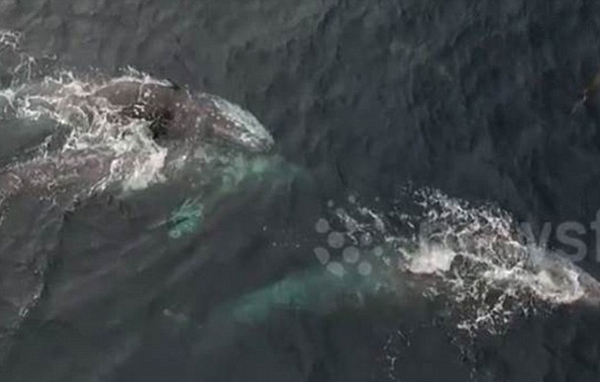 這一罕見的畫面是正在附近船上的攝影師馬克·吉拉爾多(Mark Girardeau)利用無人機捕捉到的。他說:“在它們交配的時候拍攝有點詭異,但是我覺得要把這一幕記錄下來。除非是看《國家地理》頻道或者野生動物紀錄片,不然很多人是看不到這些場景的。鯨魚在離船很近的水里翻滾打鬧,好像我們的出現(xiàn)并沒有打擾到它們!