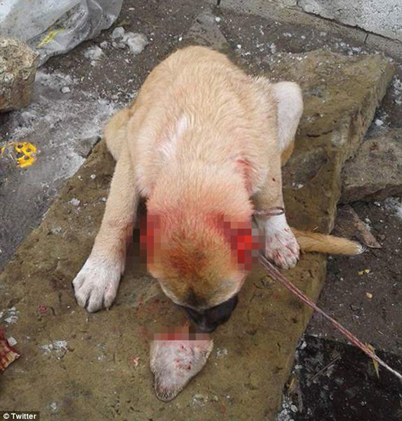 在相關(guān)照片中,2名男子分別拿著狗狗的一只耳朵,一臉的滿不在乎和冷漠。而身上沾滿血跡、痛苦不堪的狗狗只能原地哀嚎,飽受折磨。這殘忍血腥的一幕令觀者心碎。