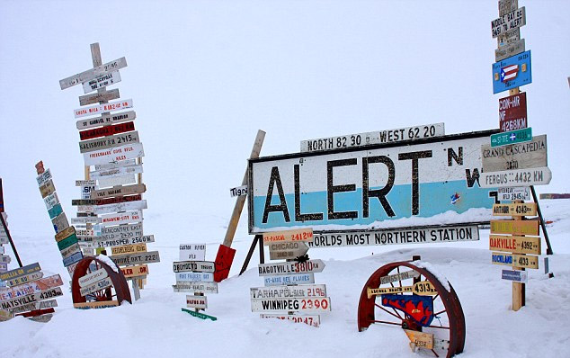 在加拿大努納武特地區(qū)的阿勒特市,每年2月份的平均氣溫為-33.2℃,最低氣溫曾達(dá)-50℃并且致使車輛無(wú)法到達(dá)該地區(qū)。在阿勒特居住和工作的人們以“冰凍的選擇”而出名。