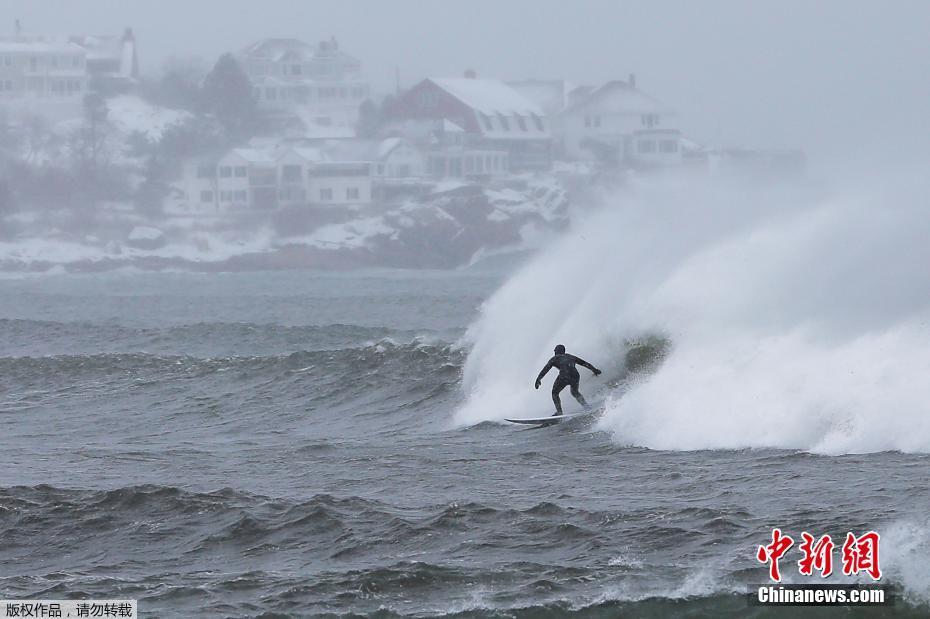當(dāng)?shù)貢r(shí)間2月13日,美國(guó)馬薩諸塞州持續(xù)暴風(fēng)雪,沖浪者不畏嚴(yán)寒在大浪中上下翻飛。