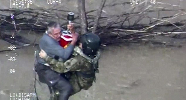 來自泰勒斯維爾市的麥克默特里被洪水從車中沖出,一直沖至普盧馬斯縣9號公路附近。絕望之中,他只得緊緊抓著旁邊的樹枝。幸運的是,加利福尼亞州國民護衛(wèi)隊當(dāng)時正在附近巡航,在發(fā)現(xiàn)麥克默特里身處險境后,他們果斷采取了營救措施,并成功地將其從洪水中救出。