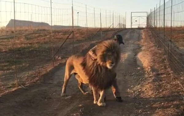 據(jù)英國《每日郵報》2月22日報道,在南非的Glen Garriff環(huán)境保護公園,一頭傲嬌的雄獅每天都會站在路中間拒絕挪動,除非它最喜歡的人——獅子經(jīng)理邁克撫摸并擁抱它后,才愿意前行。