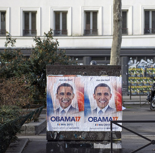 國(guó)際在線專稿:據(jù)英國(guó)《每日郵報(bào)》2月26日?qǐng)?bào)道,法國(guó)總統(tǒng)大選將于4月份舉行第一輪投票。近日,一個(gè)名為obama17的組織卻在巴黎街頭大量張貼印有奧巴馬頭像的競(jìng)選海報(bào),并表示已經(jīng)發(fā)起請(qǐng)?jiān),要求奧巴馬來(lái)競(jìng)選法國(guó)總統(tǒng)。