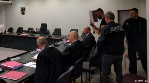 現(xiàn)年21歲的男被告(圖中手持文件夾遮擋面部者)和他的女友被控,在2016年5月11日將學(xué)習(xí)建筑專業(yè)的中國(guó)女大學(xué)生李洋潔誘騙到一所空房?jī)?nèi)將其強(qiáng)奸并殘暴虐待。(圖片來(lái)源:德國(guó)之聲電臺(tái)網(wǎng)站)
