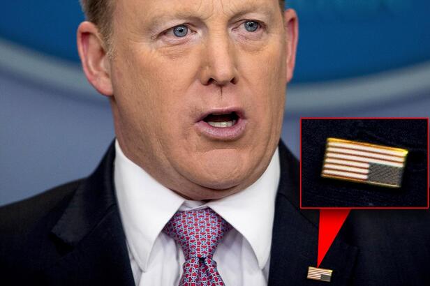 【環(huán)球網(wǎng)綜合報(bào)道】美國(guó)中文網(wǎng)3月10日援引今日美國(guó)消息稱(chēng),在10日的白宮新聞簡(jiǎn)報(bào)會(huì)上,白宮新聞發(fā)言人斯派塞鬧了一個(gè)不大不小的笑話(huà):他胸前佩戴的美國(guó)國(guó)旗徽章竟然戴反了。