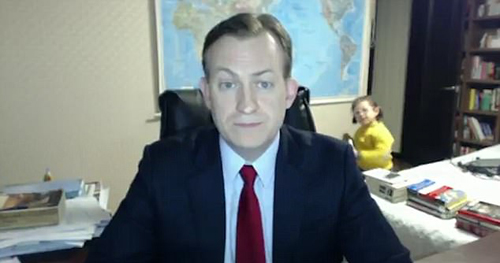 【環(huán)球網(wǎng)綜合報道】據(jù)英國《每日郵報》3月14日報道,近日,美國外交專家羅伯特 克利(Robert Kelly)教授在家里接受BBC網(wǎng)絡(luò)直播采訪時,突然房門被打開,他的女兒和蹣跚學(xué)步的兒子接連進屋,打破了原本嚴肅的采訪。羅伯特戲稱自己身受“屈辱”。對此,BBC記者則稱“很有趣”。
