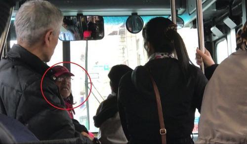 一名西語裔女子在公交車上用傘擊打王正興的頭部。(美國中文網(wǎng)視頻截圖)
