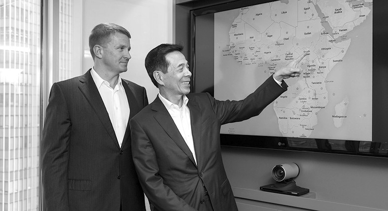 圖片說明:普林斯(左)和先豐服務(wù)集團(tuán)副主席高振順一起看非洲地圖