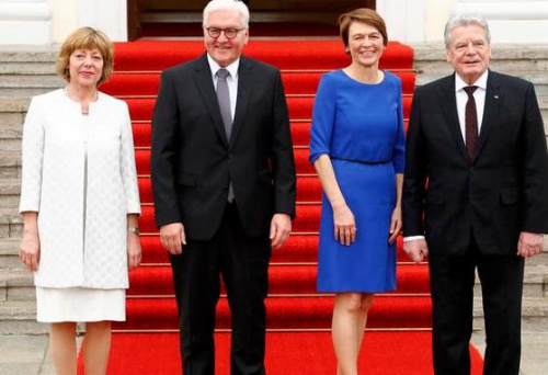 中新網(wǎng)3月20日電 據(jù)外媒報道,德國總統(tǒng)高克的任期本月結(jié)束。在柏林“美景宮”高克與其伴侶沙德(Daniela Schadt)19日迎來總統(tǒng)府的新主人施泰因邁爾夫婦。