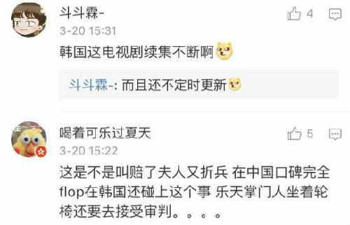 “樸槿惠下臺后就被追查了,樂天這賭博太失敗了!痹谥袊W(wǎng)友看來,這一出“韓劇”的劇情反轉之快,多少令人有些意外——