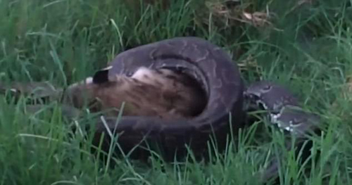 這一幕被報告給了當?shù)氐难芯咳藛T,他們隨后追蹤到這場捕殺行動。之后,他們發(fā)現(xiàn)該蟒蛇開始放緩了吞食斑鬣狗的速度。