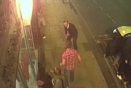 披薩店外的監(jiān)控錄像顯示,邁克爾在店外向一位中年男子借火。隨后二人額頭相抵,似乎發(fā)生沖突,不過幾秒鐘,邁克爾便兩拳將中年男子打倒在地,致其昏迷,不省人事。事后,受害者被送到醫(yī)院接受手術,醫(yī)生為其取出了大腦中的血塊并植入了鈦板。事后,邁克爾向警方自首。此前他已有兩次街頭襲擊事件記錄在案。