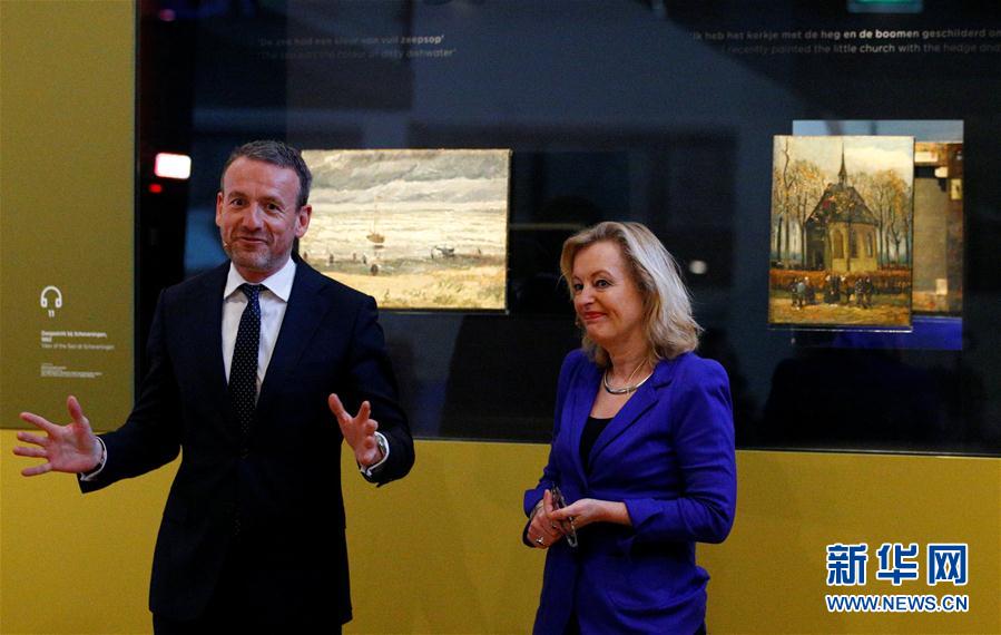 3月21日,在荷蘭阿姆斯特丹,荷蘭教育、文化和科學(xué)大臣耶特·比塞馬克(右)與梵高博物館館長(zhǎng)阿克塞爾·呂格爾出席儀式。兩幅失竊的梵高畫作21日在荷蘭首都阿姆斯特丹的梵高博物館展出,博物館舉行儀式,歡迎畫作“回家”。這兩幅畫作分別為《斯海弗寧恩的海景》和《離開尼厄嫩教堂》,于2002年12月在梵高博物館內(nèi)被盜走。2016年9月,意大利警方在意大利斯塔比亞海堡市的一間住宅內(nèi)發(fā)現(xiàn)了這兩幅畫。新華社/路透