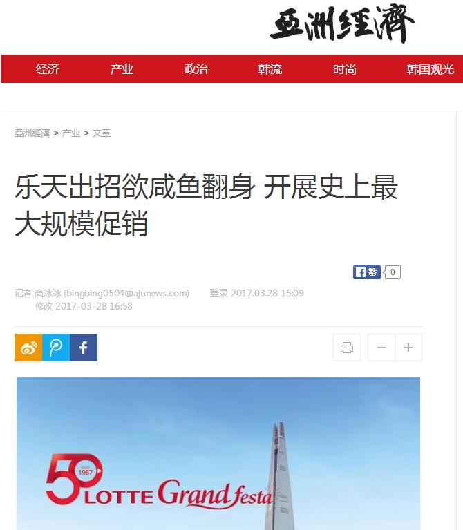 韓國《亞洲經(jīng)濟(jì)》28日對此分析稱,韓國內(nèi)需不振,中國“反制薩德”,樂天集團(tuán)在四面楚歌的情況下,試圖通過大型促銷活動尋找突破口。