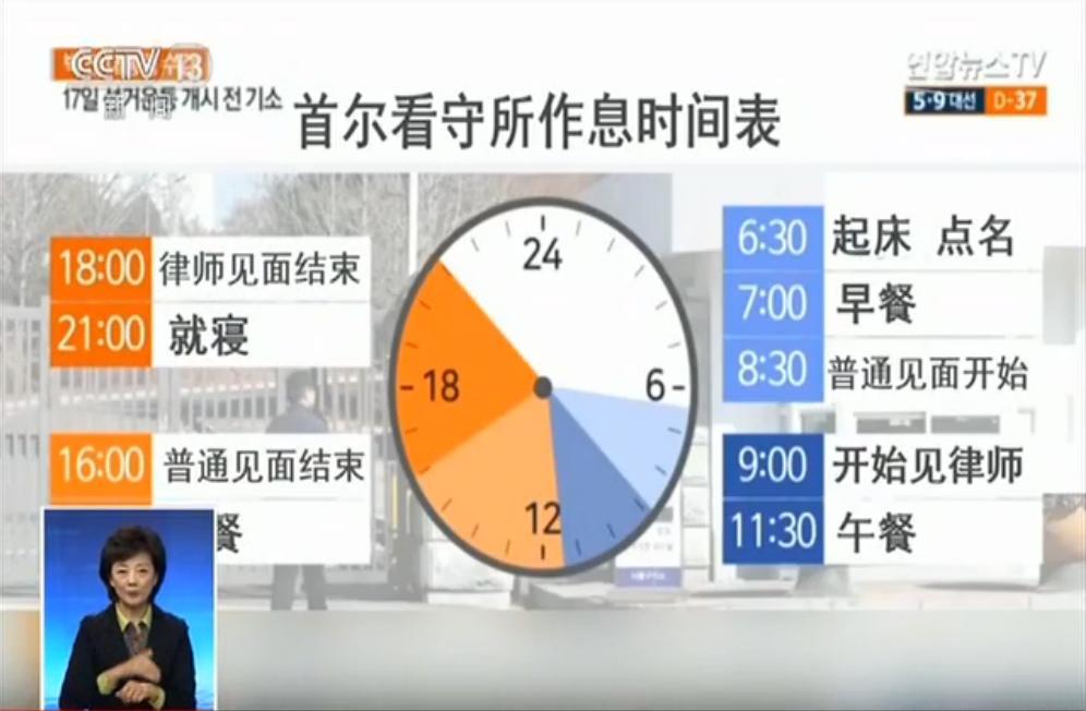 整理完內(nèi)務(wù)后,開始點(diǎn)名。早上7點(diǎn)吃早餐,11點(diǎn)30分吃午飯,下午5點(diǎn)吃晚餐。平日上午9點(diǎn)到晚上6點(diǎn),可以和律師見面,見面的時(shí)間沒有太多限制。見家人和親友的時(shí)間從上午8點(diǎn)半到下午4點(diǎn)。每天一次,每次可見十分鐘。另外,在沒判刑前,樸槿惠將不用參加勞動。