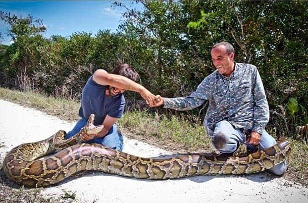 【環(huán)球網(wǎng)綜合報(bào)道】據(jù)英國《每日郵報(bào)》4月4日?qǐng)?bào)道,捕蛇人在美國佛羅里達(dá)州捕獲一條巨大的緬甸蟒蛇,長15英尺(約4.5米),重144磅(約64千克)。