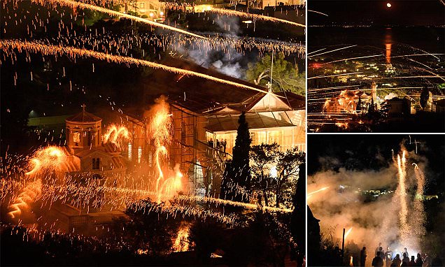 【環(huán)球網(wǎng)綜合報(bào)道】提到復(fù)活節(jié),人們通常想到的是復(fù)活節(jié)彩蛋、復(fù)活節(jié)兔子和鮮花。但接下來的這兩個(gè)教堂卻用另一種獨(dú)特的方式來慶祝這一盛大的節(jié)日。據(jù)英國(guó)《每日郵報(bào)》4月16日?qǐng)?bào)道,近日,希臘希俄斯州小島上兩所敵對(duì)教堂的信徒們通過互相發(fā)射自制火箭來慶祝復(fù)活節(jié),場(chǎng)面甚是壯觀。
