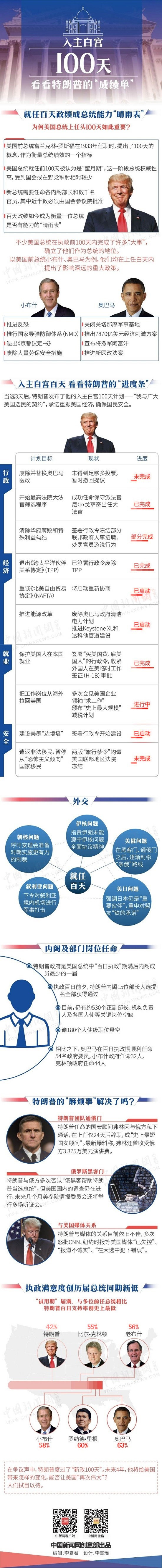 在剛剛過去的一周,飽受質(zhì)疑的特朗普密集推進一系列爭議法案,欲為“百日成績單”增色。中新網(wǎng)為您一圖解讀特朗普就職百天的“成績單”。