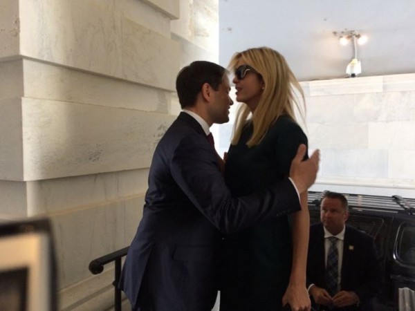 美國(guó)參議員盧比奧試圖擁抱伊凡卡,被冷漠地拒絕。(圖片來(lái)源:記者韋爾納推特)