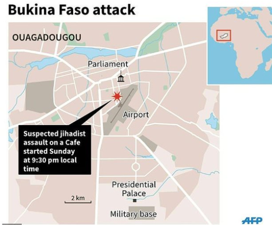 事件發(fā)生在周日(13日)晚間,據(jù)報有多名疑似圣戰(zhàn)分子持槍駕車到一間土耳其餐館,在門外向店內(nèi)開火,隨后布吉納法索安全部隊配備裝甲車輛抵達(dá)現(xiàn)場,與恐怖份子互轟,槍戰(zhàn)造成17人死亡,8人受傷(稍后死亡人數(shù)增至18人)。