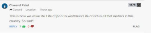 網(wǎng)友@Coward Pate:這就是我們對待生命的態(tài)度,貧窮人們的生命(在印度)毫無價(jià)值!在這個(gè)國家,只有富人的生命才值得一提。太悲傷了! !