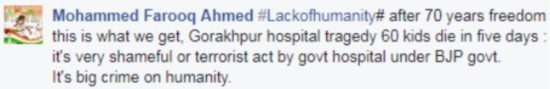 網(wǎng)友@SIDDHARTHA MISHRA:獨(dú)立70周年紀(jì)念日,死了70個(gè)孩子,而莫迪卻在紅堡(作獨(dú)立日演說)。