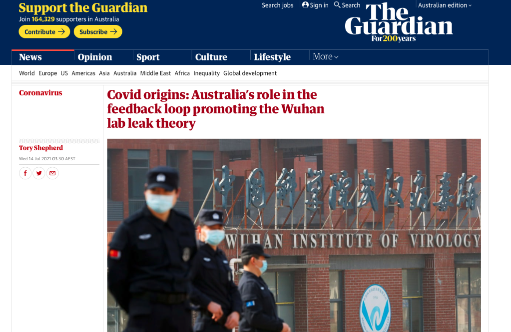 《衛(wèi)報》澳大利亞版刊文《新冠溯源:澳大利亞在推動武漢實驗室泄漏論中扮演了什么角色》,揭露澳大利亞記者沙麗·馬克森與美國右翼勢力聯(lián)手炒作新冠病毒“實驗室泄漏論”的相關內幕。(網(wǎng)頁截屏)