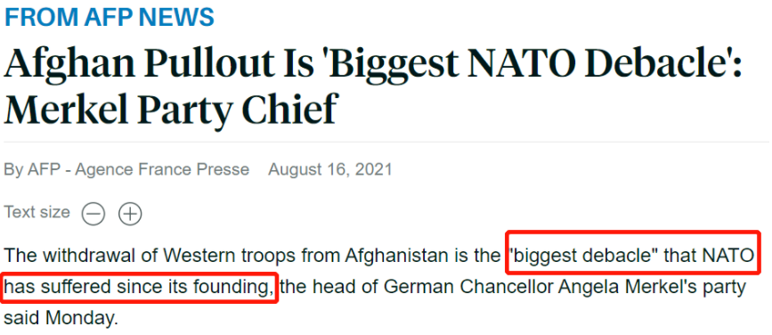 其后果已經(jīng)顯現(xiàn)出來。法國多家媒體報道,德國總理默克爾所在政黨的領(lǐng)導(dǎo)人阿明·拉舍特16號表示,西方軍隊(duì)從阿富汗撤出是北約自成立以來遭受的“最大失敗”。