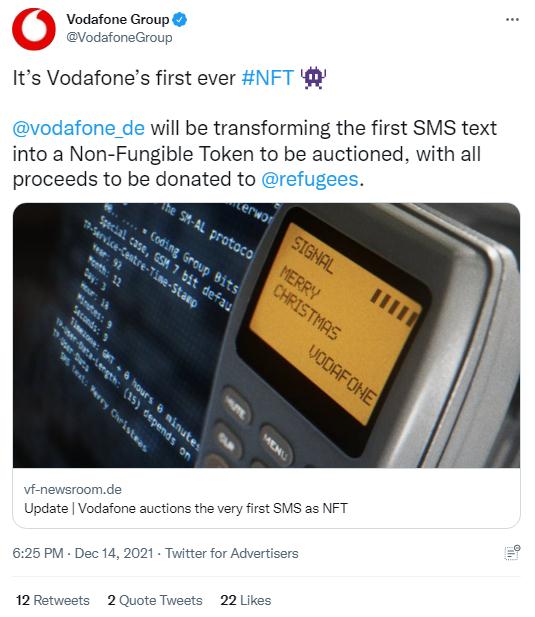 英國(guó)沃達(dá)豐公司表示,計(jì)劃將拍賣(mài)所得全部捐贈(zèng)給聯(lián)合國(guó)難民署,以支持那些被迫逃離家園的人。(圖片來(lái)源:英國(guó)沃達(dá)豐公司社交媒體截圖)