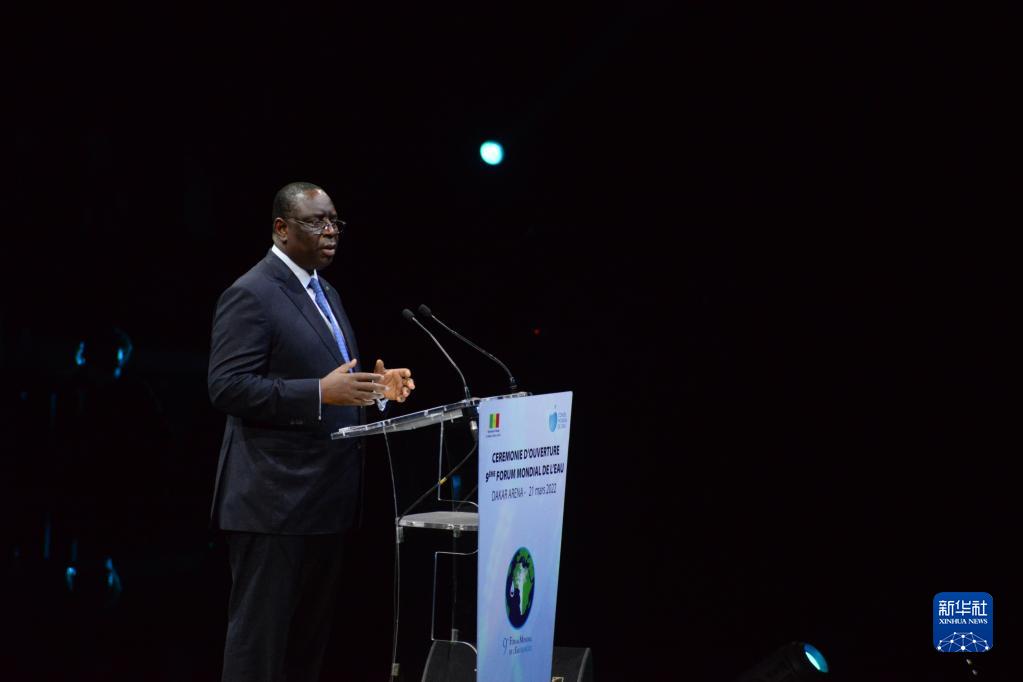 3月21日,塞內(nèi)加爾總統(tǒng)薩勒在達(dá)喀爾主持第九屆世界水論壇開(kāi)幕式。新華社發(fā)(迪拉尼·賽迪攝)