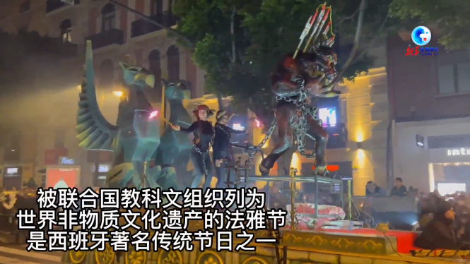 ↑3月19日,人們在西班牙巴倫西亞參加法雅節(jié)火焰游行。新華社記者 孟鼎博 攝