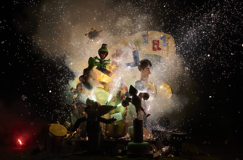↑這是3月19日在西班牙巴倫西亞拍攝的被點燃的法雅玩偶。新華社記者 孟鼎博 攝