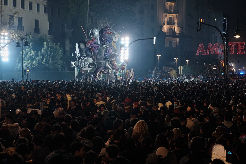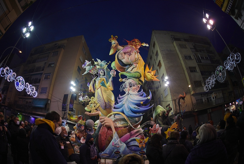 ↑3月19日,人們在西班牙巴倫西亞觀看法雅玩偶。新華社發(fā)(帕布羅·莫拉諾攝)