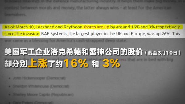 “戰(zhàn)爭持續(xù)的每一天,甚至每一分鐘,美國政客和軍火商都在拼命賺錢!”