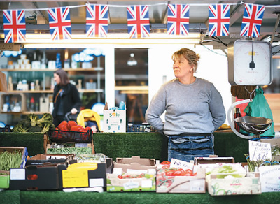 英國(guó)通脹率近來屢創(chuàng)新高,面對(duì)物價(jià)飛漲、生活成本增加,更多英國(guó)人會(huì)在購(gòu)物時(shí)貨比三家。圖為五月三十日,在英國(guó)倫敦,一名蔬果攤主在市場(chǎng)等待顧客。