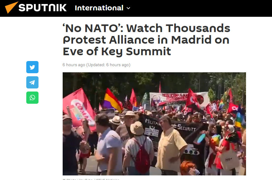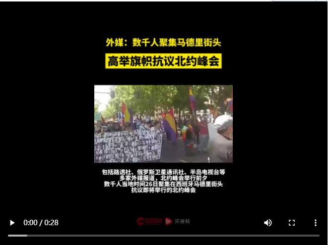 俄衛(wèi)星社:“不要北約”,關(guān)注馬德里(北約)峰會(huì)前夕數(shù)千名抗議者組成的聯(lián)盟