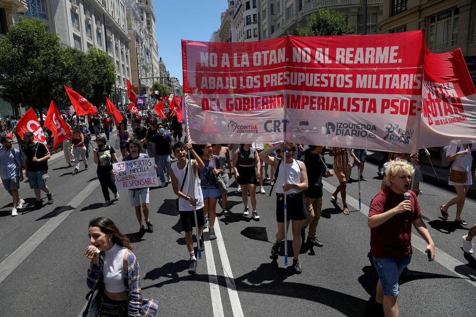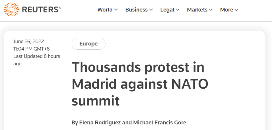 路透社:數(shù)千人在馬德里抗議北約峰會(huì)