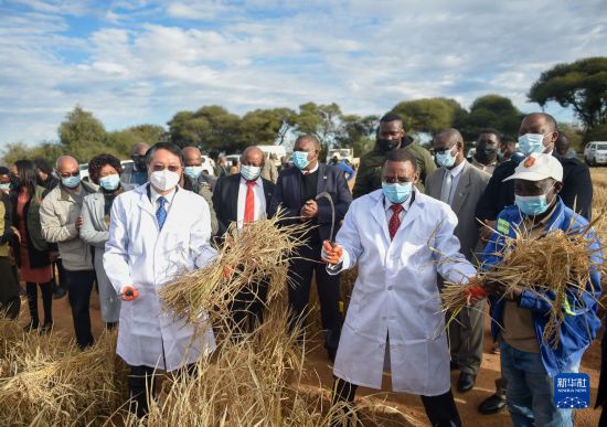 當(dāng)天,中國駐博茨瓦納大使王雪峰同博代總統(tǒng)措霍瓦內(nèi)一起走進(jìn)水稻試驗田,拿起鐮刀收割水稻,共同分享豐收喜悅。兩人還就加強(qiáng)兩國農(nóng)業(yè)合作進(jìn)行了交流。