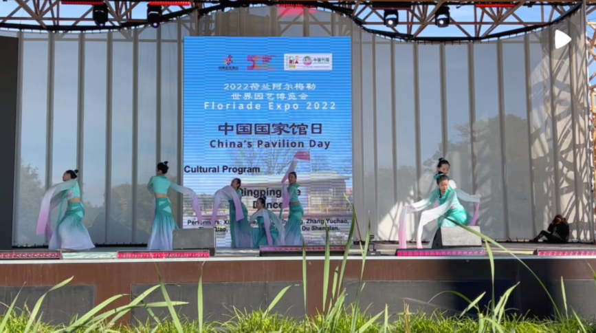 中國國家館日活動現(xiàn)場播放了2024年成都世園會宣傳片,向2022年荷蘭世園會各參展國和地區(qū)發(fā)出誠摯邀請。中荷藝術家為世園會觀眾帶來武術、舞龍、二胡合奏、獨唱等精彩演出,展現(xiàn)了多姿多彩的中國文化,贏得陣陣掌聲。