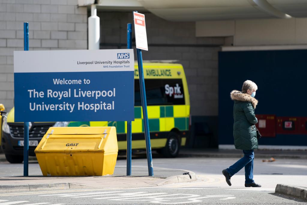 4月1日,一名女子經(jīng)過英國利物浦的一家醫(yī)院。新華社發(fā)(喬恩·休珀攝)
